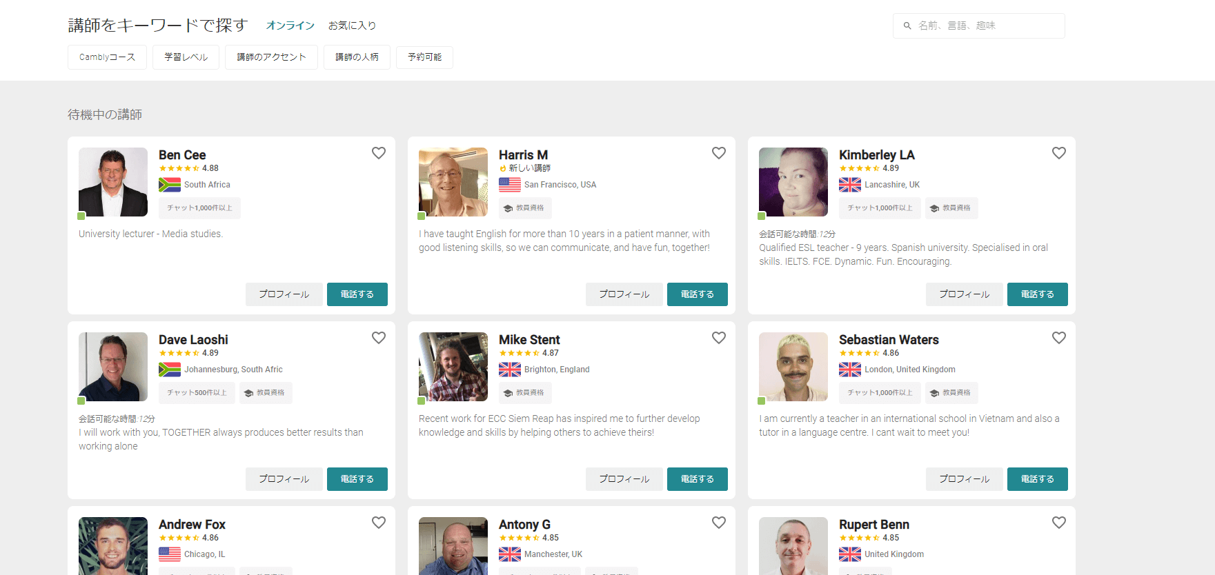 CAMBLYの大きな特徴の一つは、講師が全員ネイティブスピーカーである点です。