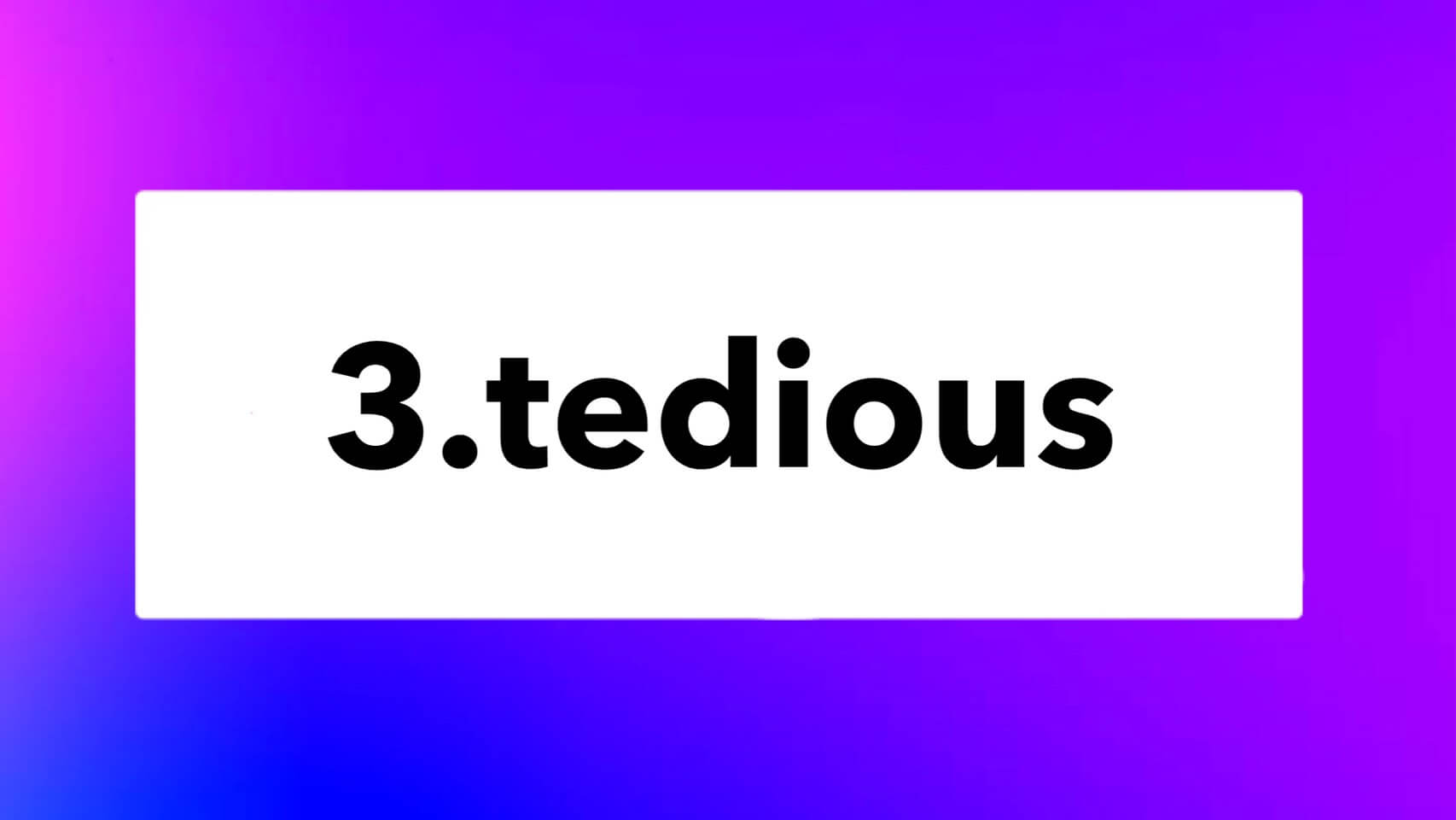 「Tedious」こちらの単語の意味は、形容詞で長ったらしく退屈な/時間がかかるです。