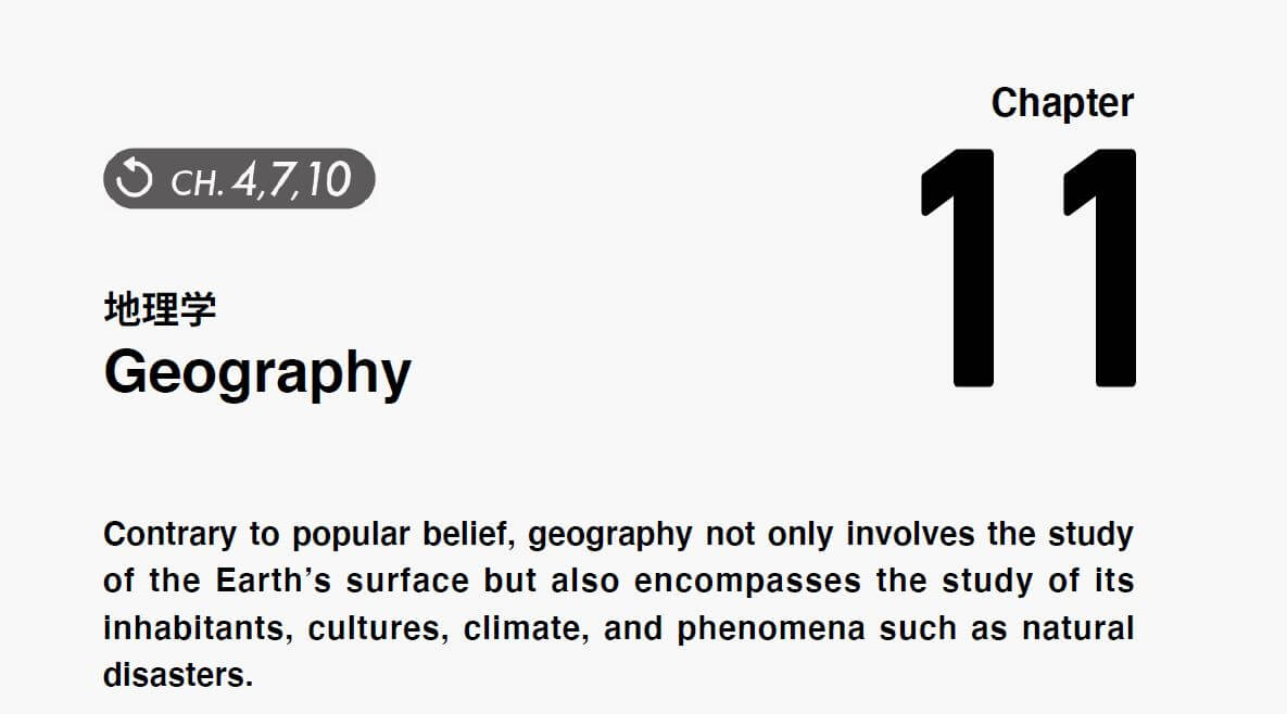 例えば上の図を見ると、Chapter 11の扉に「CH. 4, 7, 10」と書いていますね。これは「Chapter 11の学習を始める前に、必ずChapter 4, 7, 10を復習してください」というメッセージです。