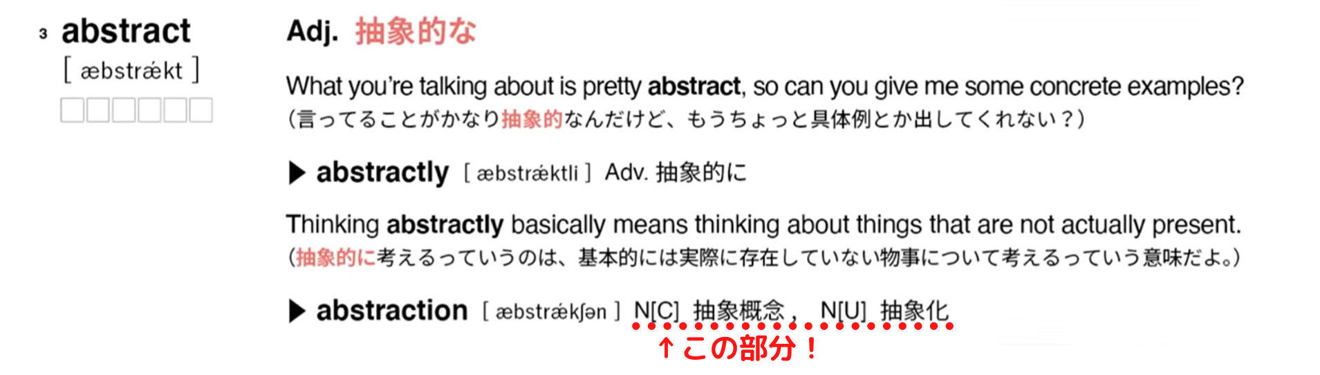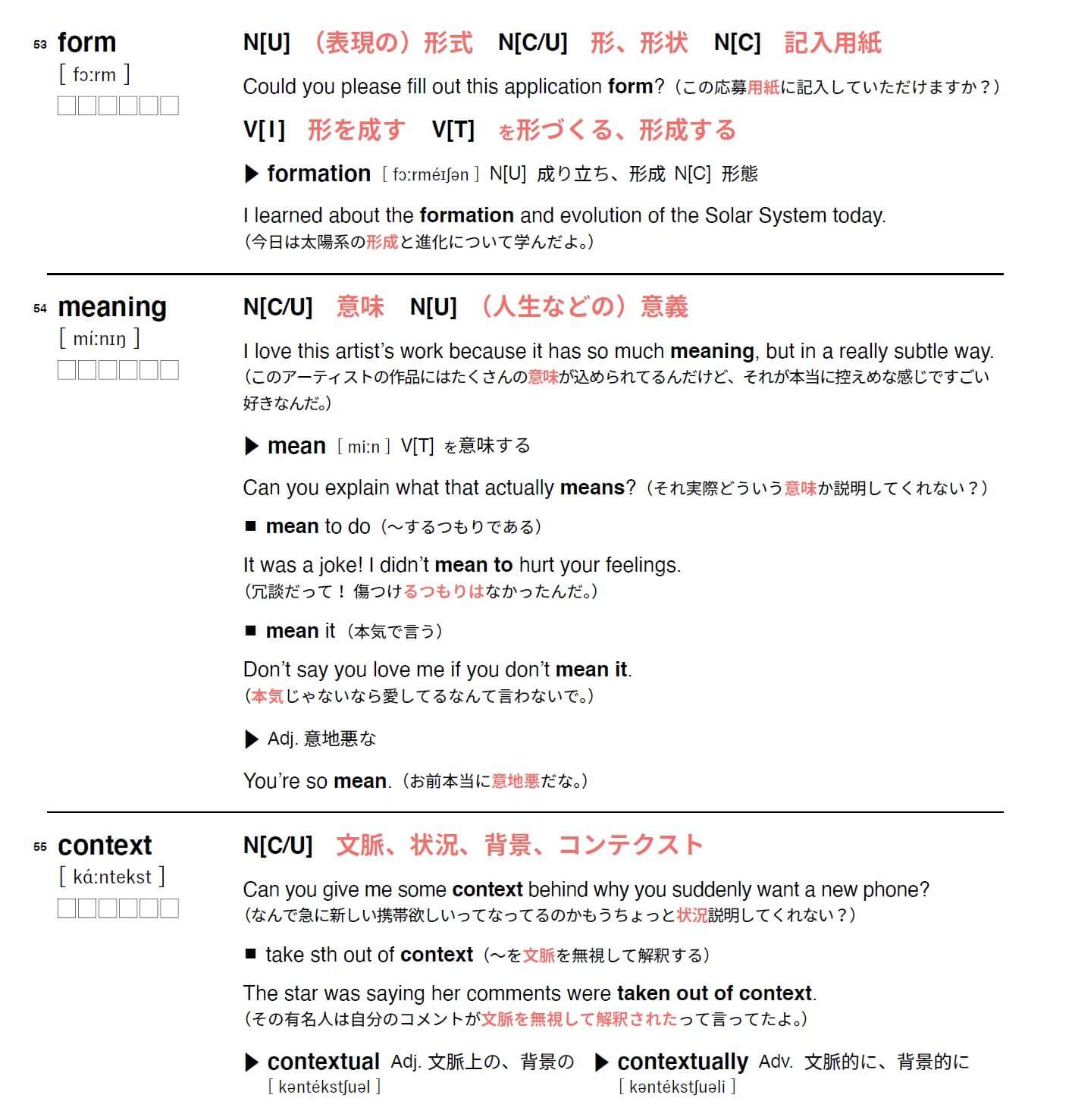 また、派生語に対してもできる限り実践的な例文を収録することで、各語彙の持つプラクティカルな側面を本書を通じてできる限り感じられるように工夫しました。