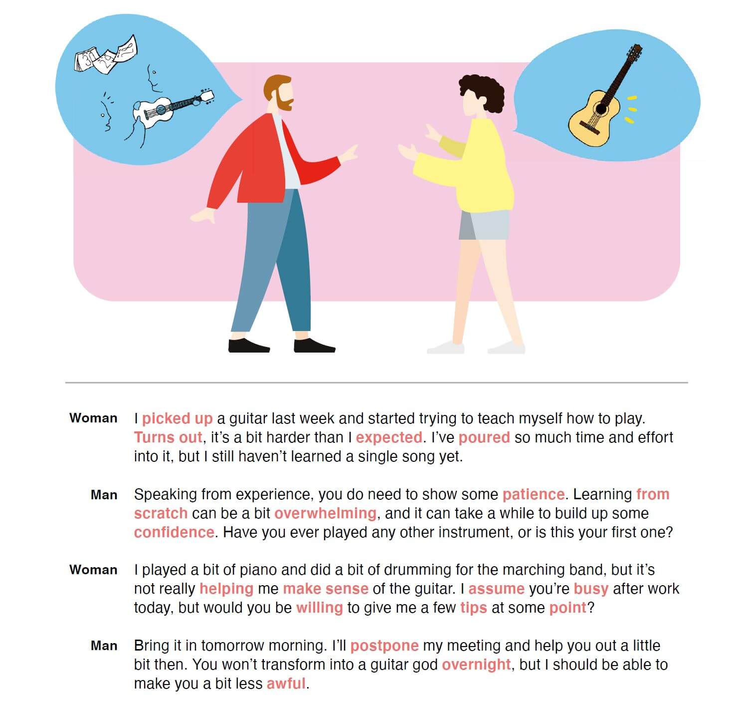 といった例文が収録されていました。少しかたいですよね。実践的な場面でどうやって使うかは分かりにくいかと思います。