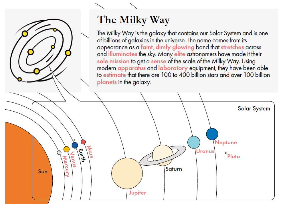 アカデミックセクションは、該当ページの収録語彙を含む学術的でフォーマルな英文を収録しています。