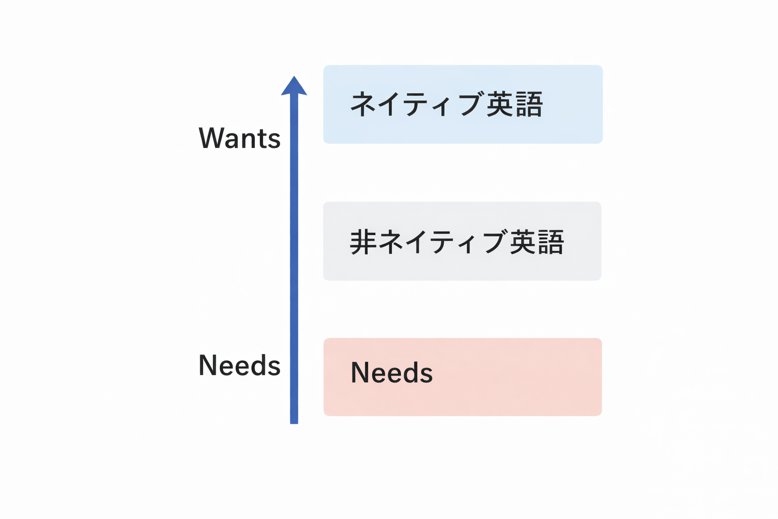 ここまで読むと、「じゃあ、ネイティブレベルを目指す必要ないじゃん」