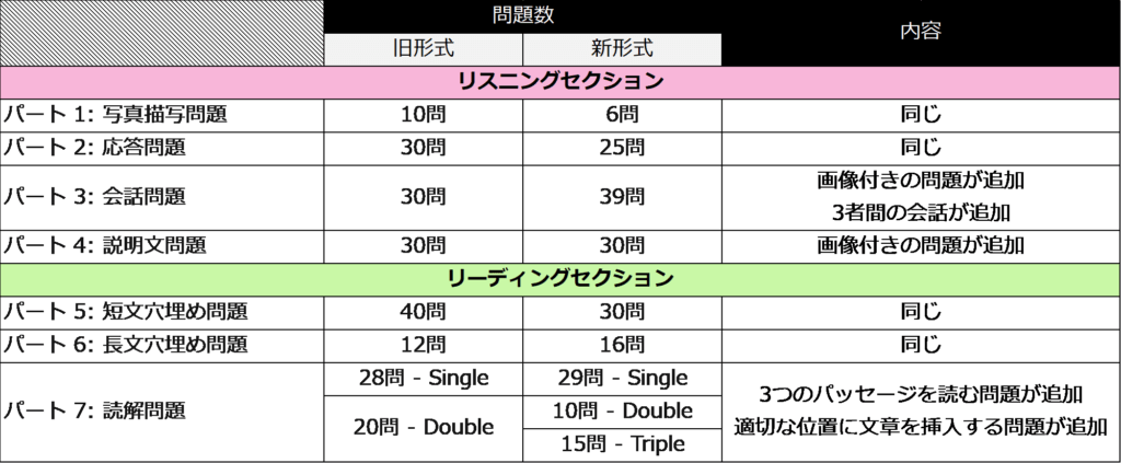 そこで今回はパート別に旧形式と新形式を比較し、その違いをまとめてみました。早速みていきましょう!