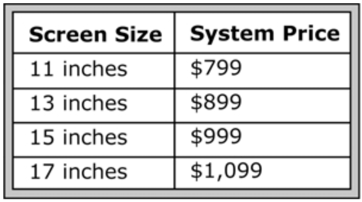 No. 43 Look at the graphic. What size screen will the man order?