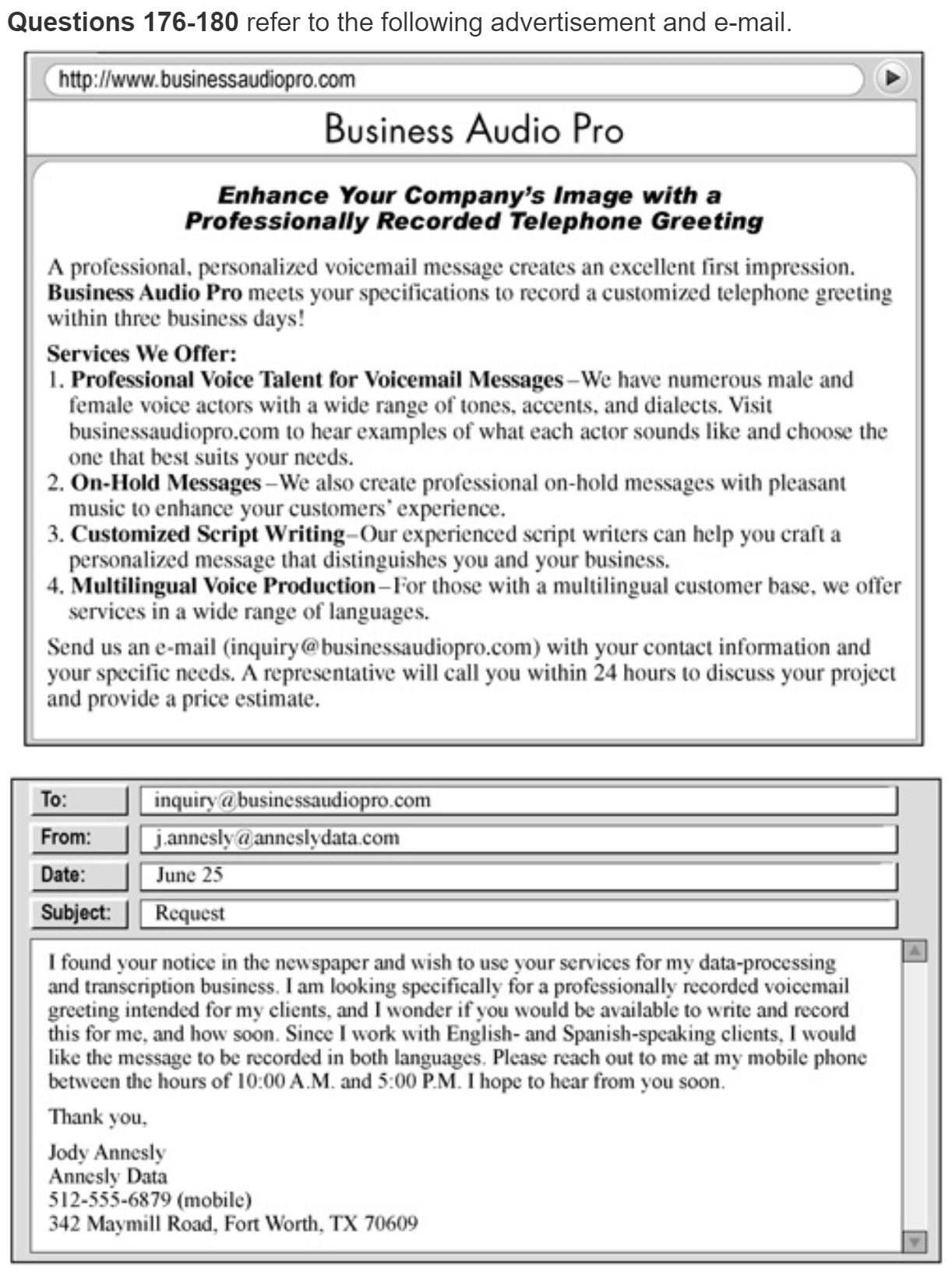 No. 176 According to the advertisement, why should customers visit the Business Audio Pro Web site?