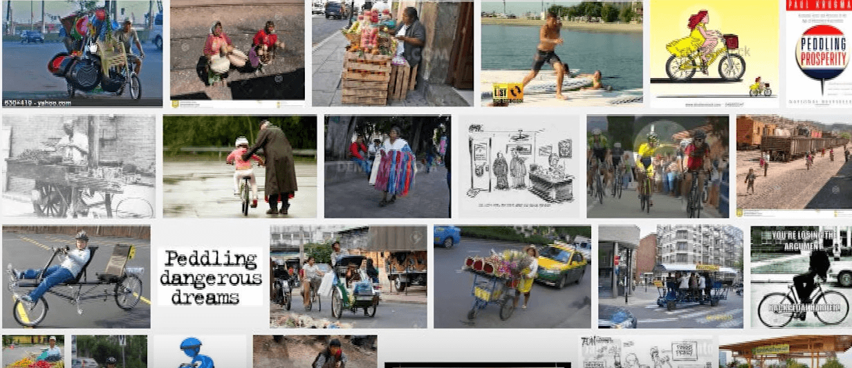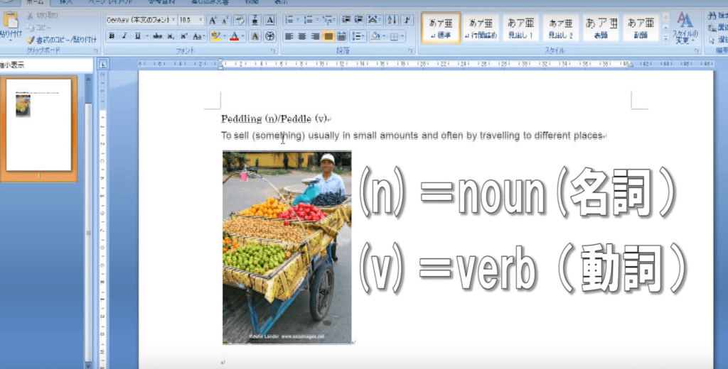 すると、荷車で物を売っている人の画像が多く表示され、「peddling」のイメージが一瞬で掴めました。