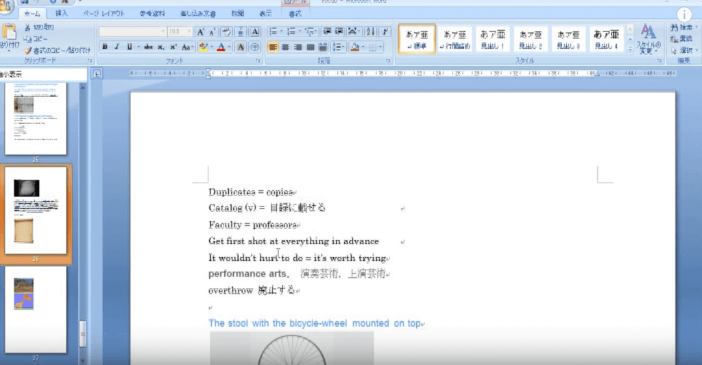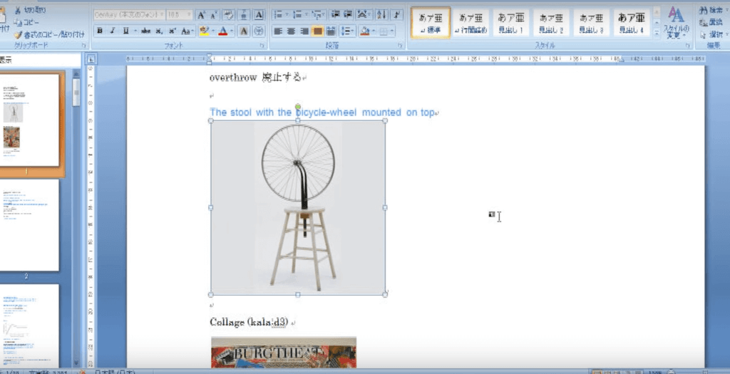 例えば、「the stool with the bicycle wheel mounted on top」という表現が模試に出てきたことがありました。これは芸術作品を指しますが、文字で定義を読むよりも、画像を見た方が一瞬で意味が理解できます。