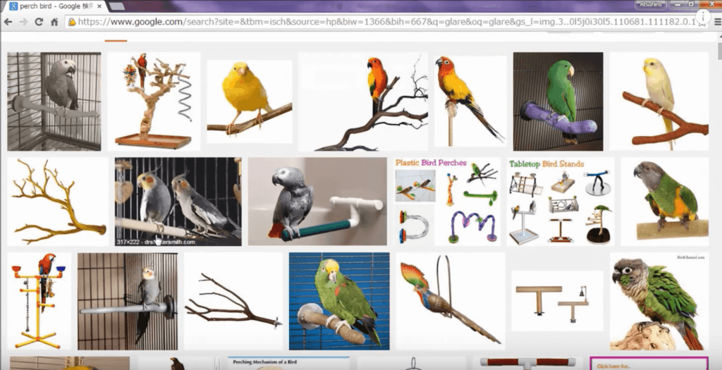 すると、インコやオウムが止まっている木の画像が多く表示されます。